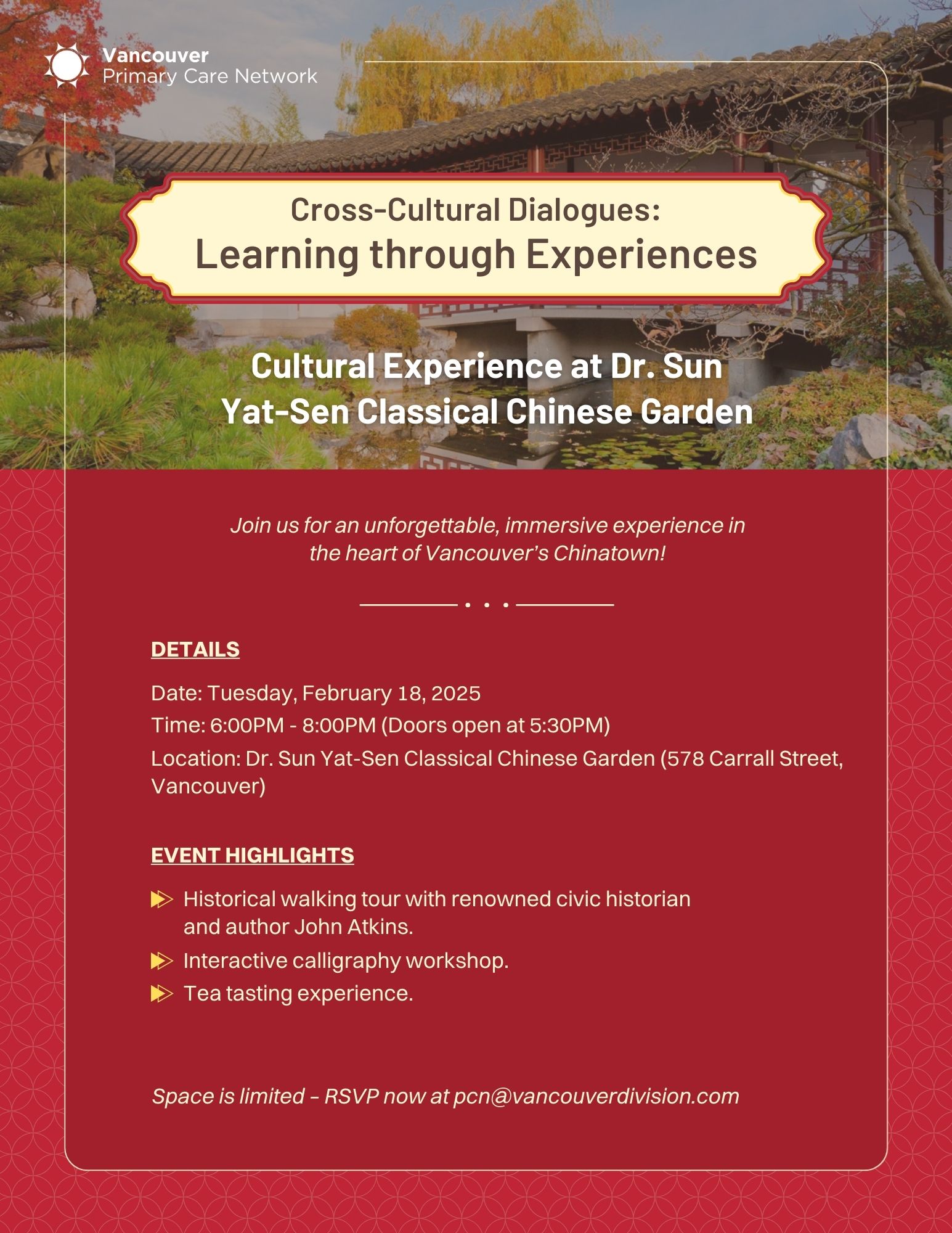 This event is open to Family Physicians and Nurse Practitioners working in the Vancouver PCNs. Click on the link below to register.