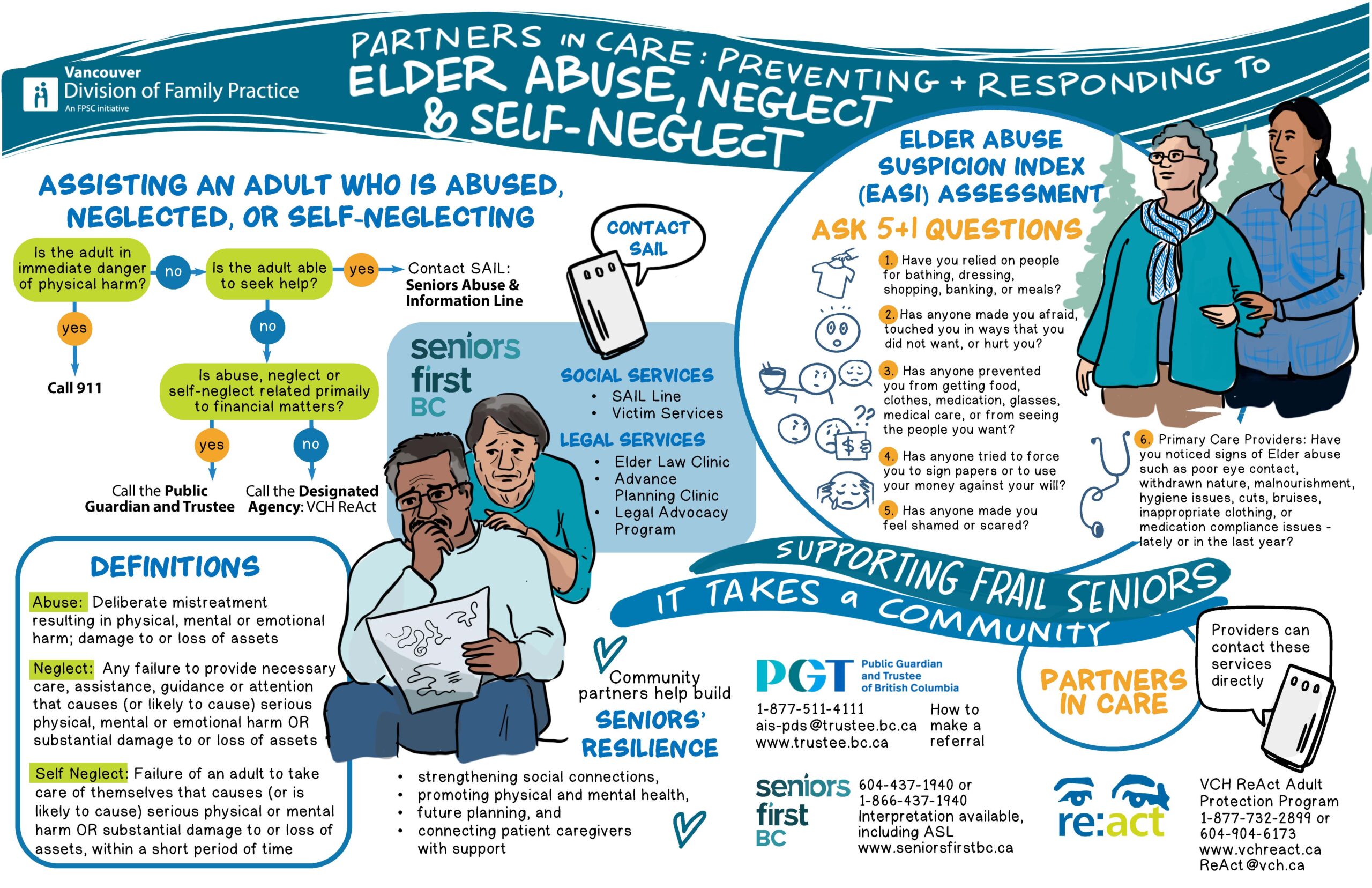 On October 9th, 2024 the Vancouver Divisions Seniors and Frail Elder Care Committee partnered with the Vancouver Primary Care Networks to deliver an in-person event focusing on preventing and responding to abuse, neglect and self-neglect for seniors. This event was the second in the Partners in Care Series, the first one was in March of this year and focused on navigating resources for frail seniors. You can view the resource page for that first event here. 72 Primary Care Providers attended the session to receive valuable information from the Vancouver Coastal Health ReAct Team, the Public Guardian and Trustee, as well as Seniors First BC.